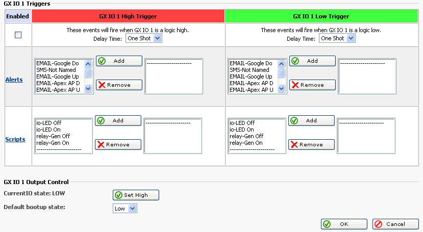 Below is a screen shot of the RMS-200 I/O setup page for GPIO 1. GPIO pins can be