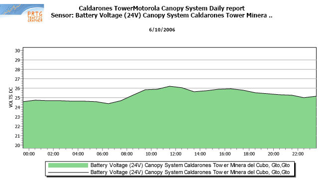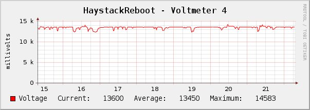 Below is a screen shot of a graph made with PRTG. The voltmeter graph depicts battery voltage at a