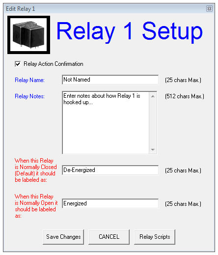 Relay Action Confirmation - When this is selected, confirmation will be needed on each relay action. If Relay Action Confirmation is not selected, then relay actions are immediate.